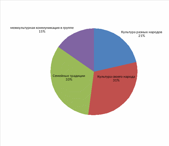 В результате проведенного анкетирования мы увидели, что родители активно приобщают детей к народным праздникам, рассказывают о них детям. Родители детей- инофонов активно знакомят детей с русскими народными праздниками, такими как «Новый год», «Масленица», «Пасха».