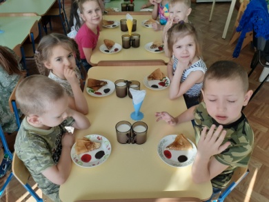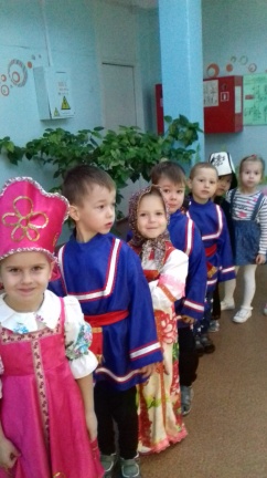 а Масленицу родители так же пекут блины, наряжают детей в русские народы платки, косоворотки.