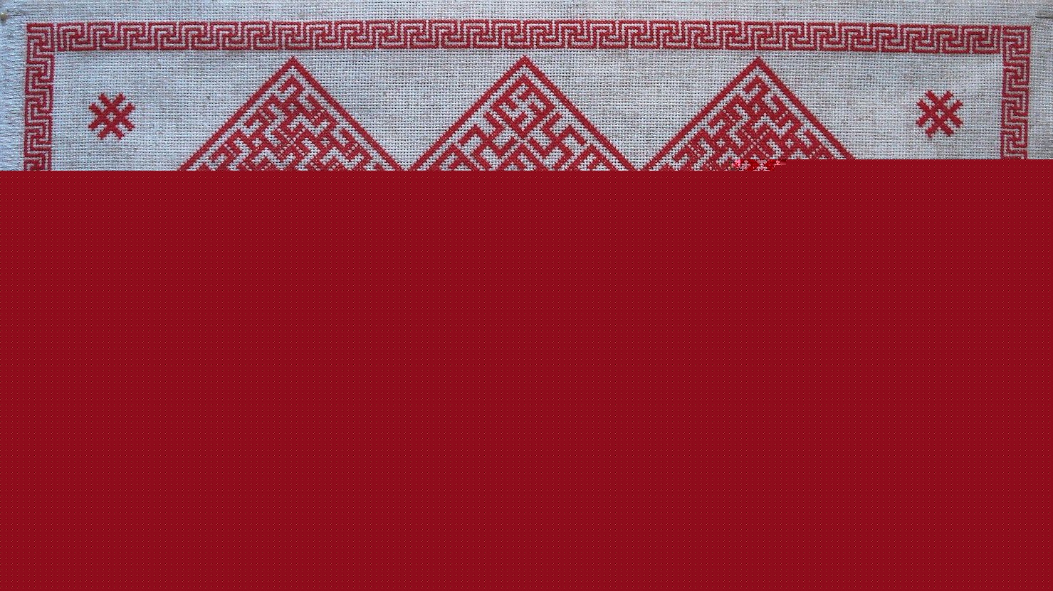 В вышивках русских мастериц рубежа ХI – ХII веков широко использованы мажорные цвета – красный, голубой. Смолянки же добавляют еще желтый. Крупный квадрат заполняют обычно квадратики-точки – древний символ засеянного поля. Ученые считают, что такой ромбо-точечный узор имеет самое прямое отношение к свадебному обряду и быту молодой замужней женщины, а все в целом связано с магией плодородия.