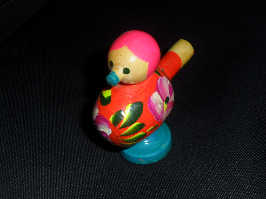 Мастера-игрушечники земли Смоленской чаще всего создают игрушки-свистульки в виде фигурок коня, птицы, козла, барана. Из декоративных настольных игрушек выделяются красочностью и мягким юмором изображения женских фигурок, всевозможных «кормилец» («кормилок»), «водоносок», «птичниц» и т. п. Роспись производится клеевыми красками и связана с технологией, не требующей обжига (подсушивание и обжиг полуфабриката не исключаются). Процесс изготовления игрушки-свистульки индивидуален для каждого мастера, поэтому не существует единой технологии (Рис.15) .