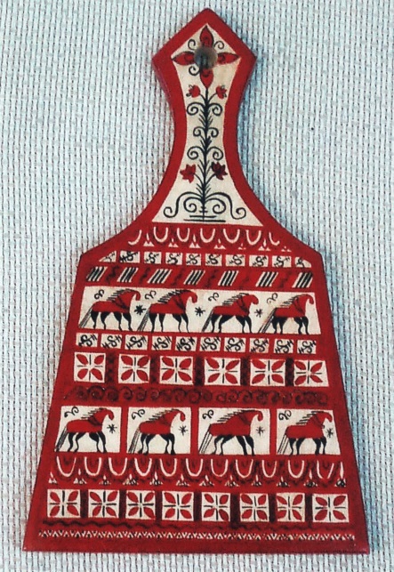 Мезенская роспись возникла на севере, в Архангельской области. Она считается одной из самых древних и самой лаконичных и по цвету (всего 2 цвета: красный и чёрный), и по изобразительным средствам (прямые и волнистые линии, треугольники, прямоугольники, кружочки, спиральки и т.д.) .