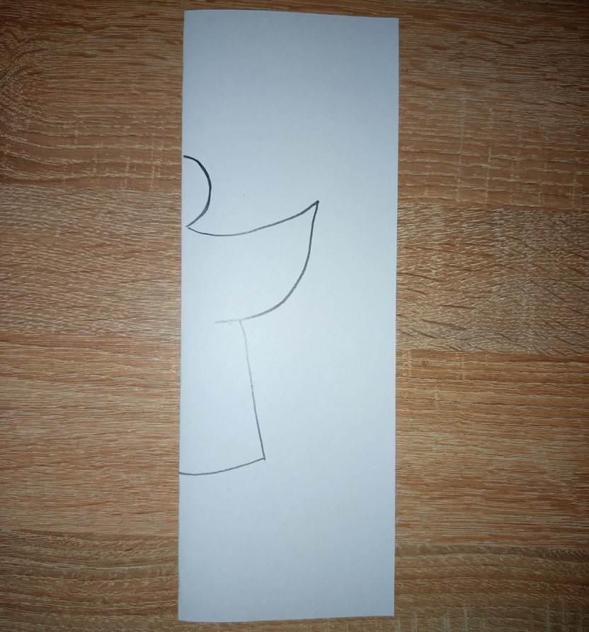 2. Рисуем карандашом силуэт ангела на сложенном листе бумаги. Сначала полукруг (голова). Затем крыло и "юбку".