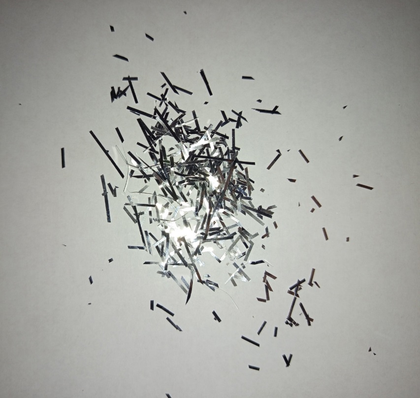 6. Нарезаем мелко мешуру ножницами.