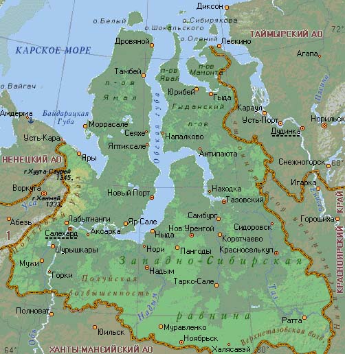 - Найдите Ямал на карте.