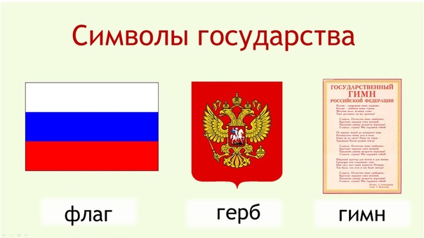 Создание проблемной ситуации | - Как называется государство, в котором мы все живем? (Россия). - Как мы называем страну, где мы родились? (Родина, отечество). - Посмотрите на слайд, что вы видите? (Флаг, герб, гимн). - Верно, ребята. - У любой страны есть три обязательных символа. По ним всегда можно узнать, о какой стране идет речь. Это – герб, флаг и гимн. |