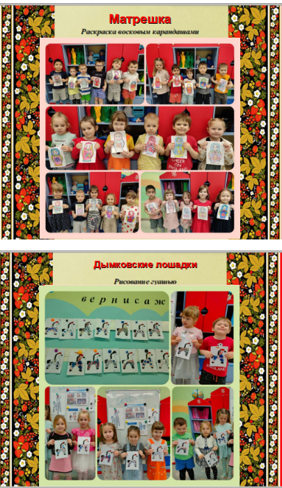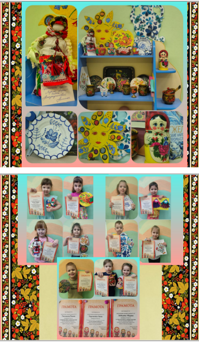 2. Выставка — конкурс творческих работ (совместных с родителями воспитанников) «Русские народные промыслы» с вручением грамот победителям и участникам.
