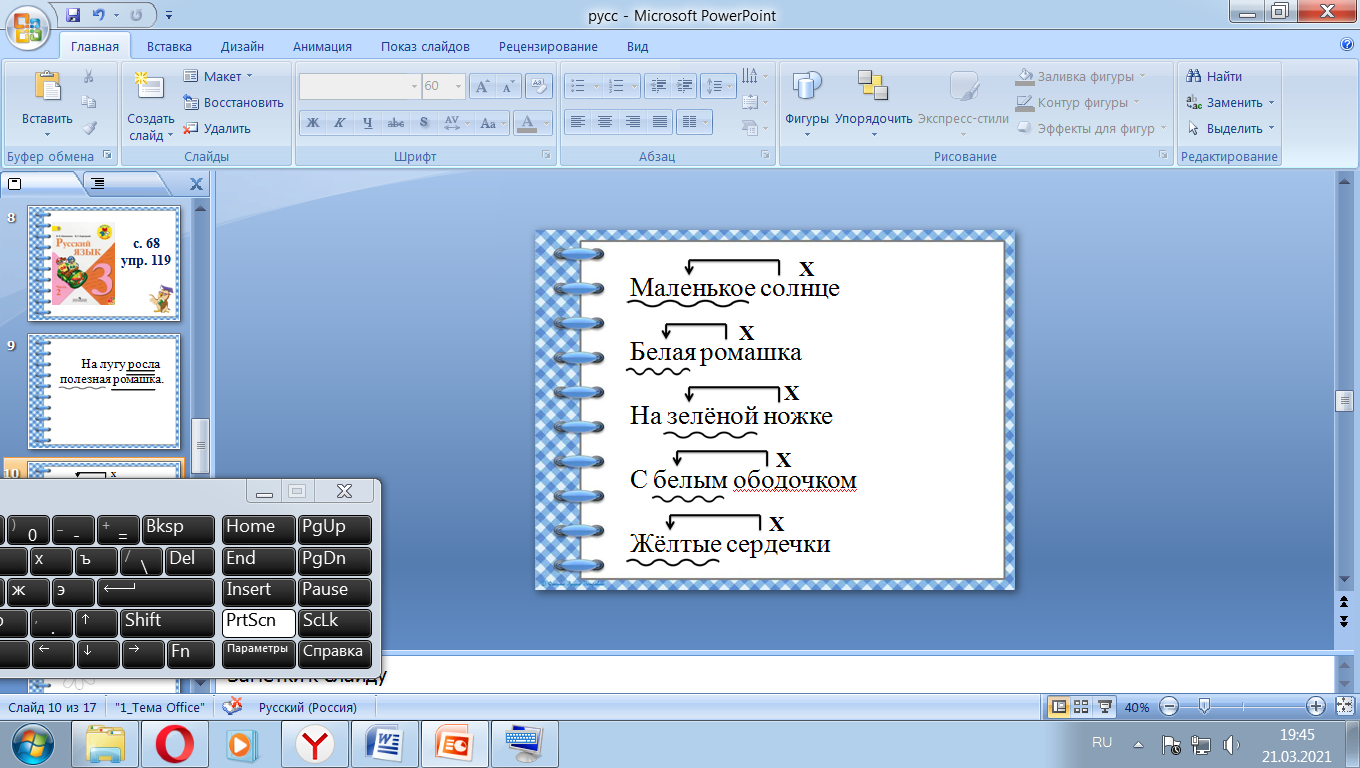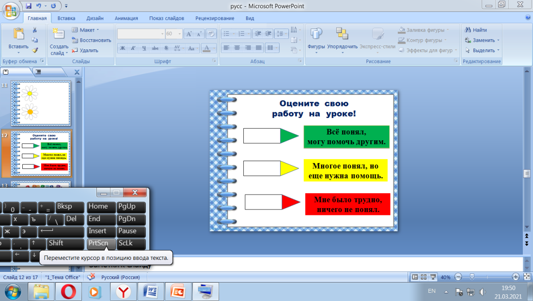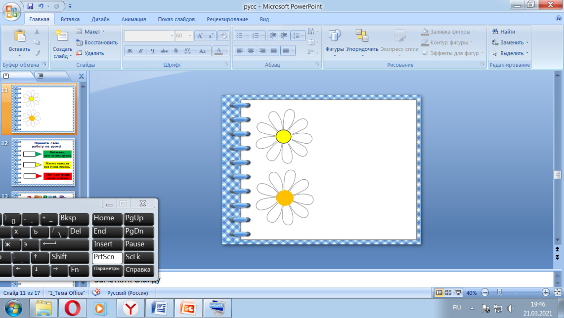 Нарисовали ромашку с желтой серединкой (на листочке), у ребят, которых не все словосочетания нарисовали ромашку с оранжевой серединкой.
