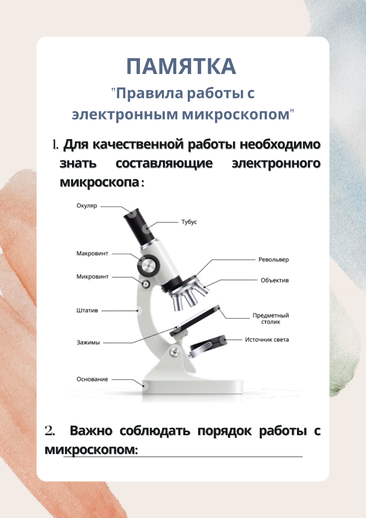1. Подбор опытов для электронного микроскопа, направленных на формирование основ экологической культуры обучающихся 3 класса;