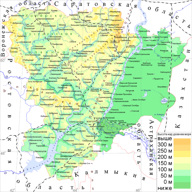 Карта Волгоградской области с указанием территорий ООПТ.