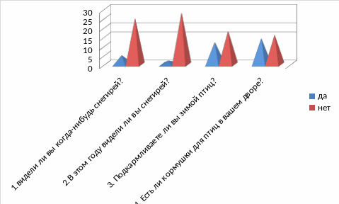 При работе над проектом «Снегири» учащиеся провели исследование, анкетирование у одноклассников и взрослого населения (родственники, соседи).