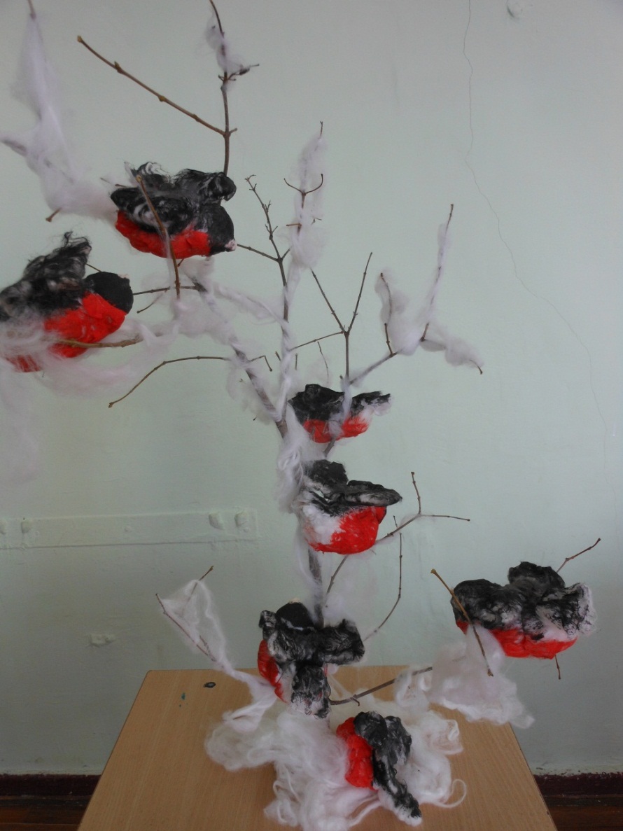 Этапы изготовления композиции «Снегири»
