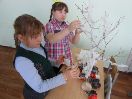 Ветка дерева, гипс, вата, клей ПВА и клей «Титан» и гуашевые краски, пластмассовые глаза и пенопласт (для практической части).