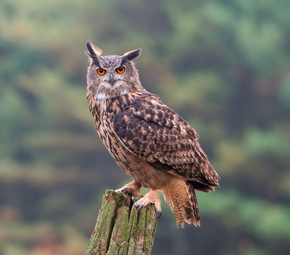 Очень крупная сова темно-желтой окраски. Очень большой размах крыльев. На голове хорошо развиты пучки перьев - «ушки». На теле темные мелкие полосы. Полет медленный и волнистый. Летает обычно невысоко над землей в основном ночью. Гнезда устраивает среди камней. Питается млекопитающими мышами, зайцами и некоторыми птицами. Охотится ночью. Тоже на грани исчезновения.