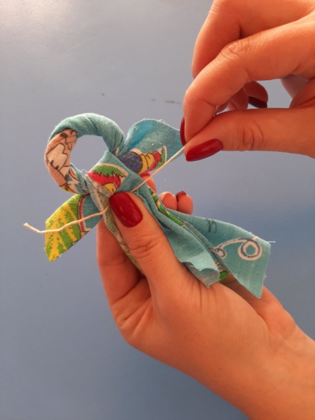 Завязываем крепко ниткой под руками нашего оберега, чтобы заготовка не распускалась.