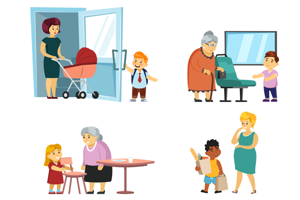 Практическое обучение вежливости начинается в семье. Если домочадцы привыкли вести себя спокойно, естественно и вежливо, то и ребёнок начнёт перенимать такую модель поведения, подражая взрослым.