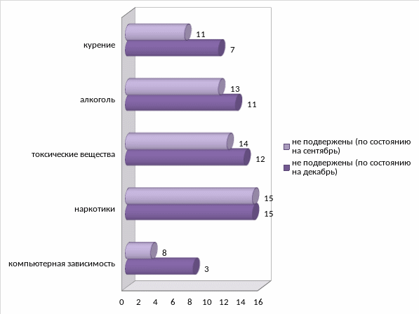 В школе есть учащиеся с аддиктивным поведением. Аддиктивное поведение – это одна из основных форм отклоняющегося поведения с наличием стремления к уходу от реальности путем искусственного изменения своего психического состояния, путем злоупотребления различными веществами (табакокурение, алкоголь, токсические вещества, наркотики) или постоянной фиксацией внимания на определенных видах деятельности, направленных на развитие и поддержание интенсивных эмоций.