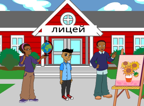Добавьте персонажа — ученика, учителя и директора школы. Для каждого персонажа выберите подходящий костюм.