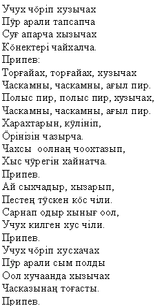 Жаворонок” (“Тор?айах”) (муз. М. Боргоякова, сл. Ф. Тахтобина).