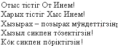 Исполняется песня “Жаворонок” (“Торғайах”).