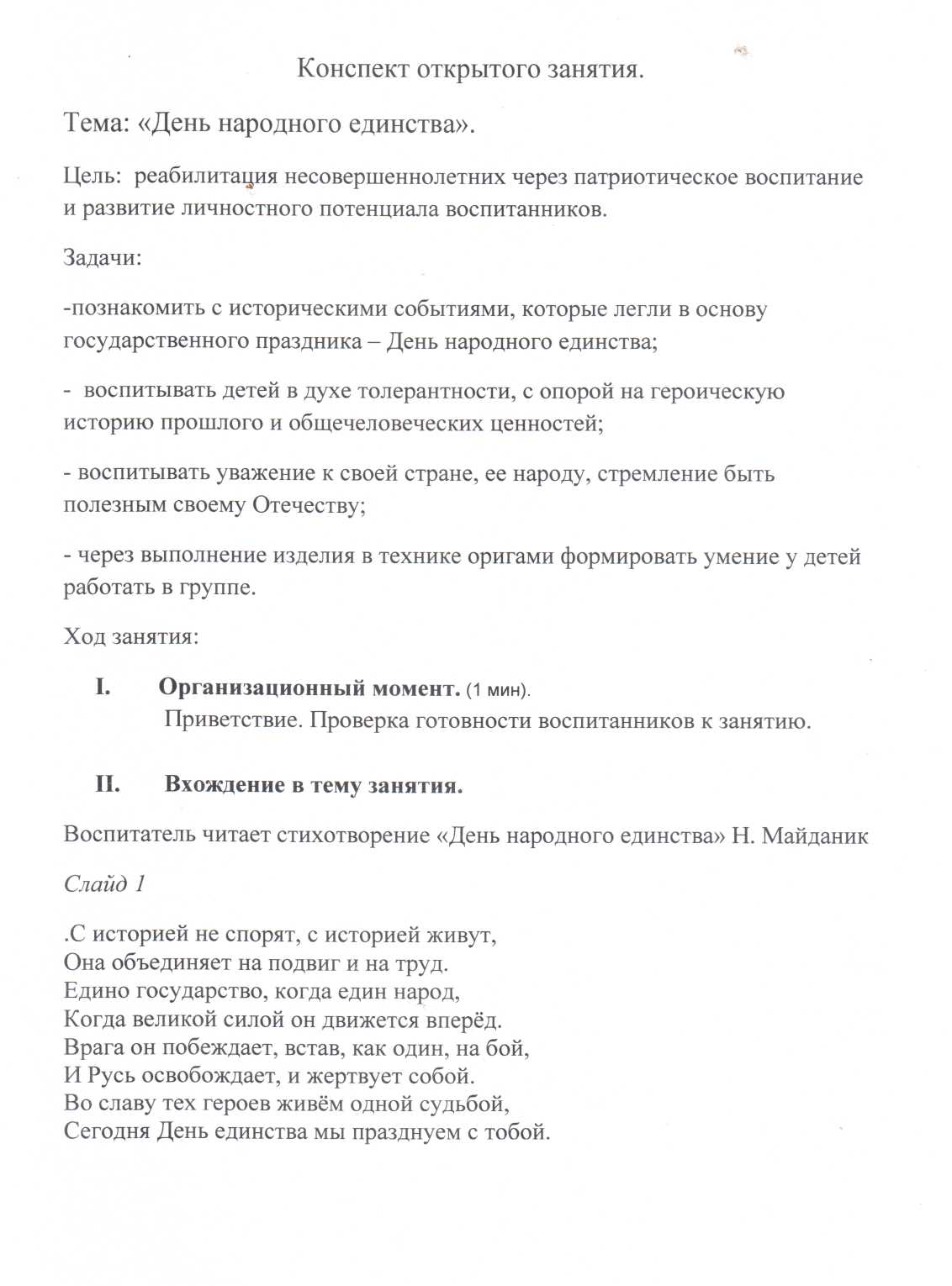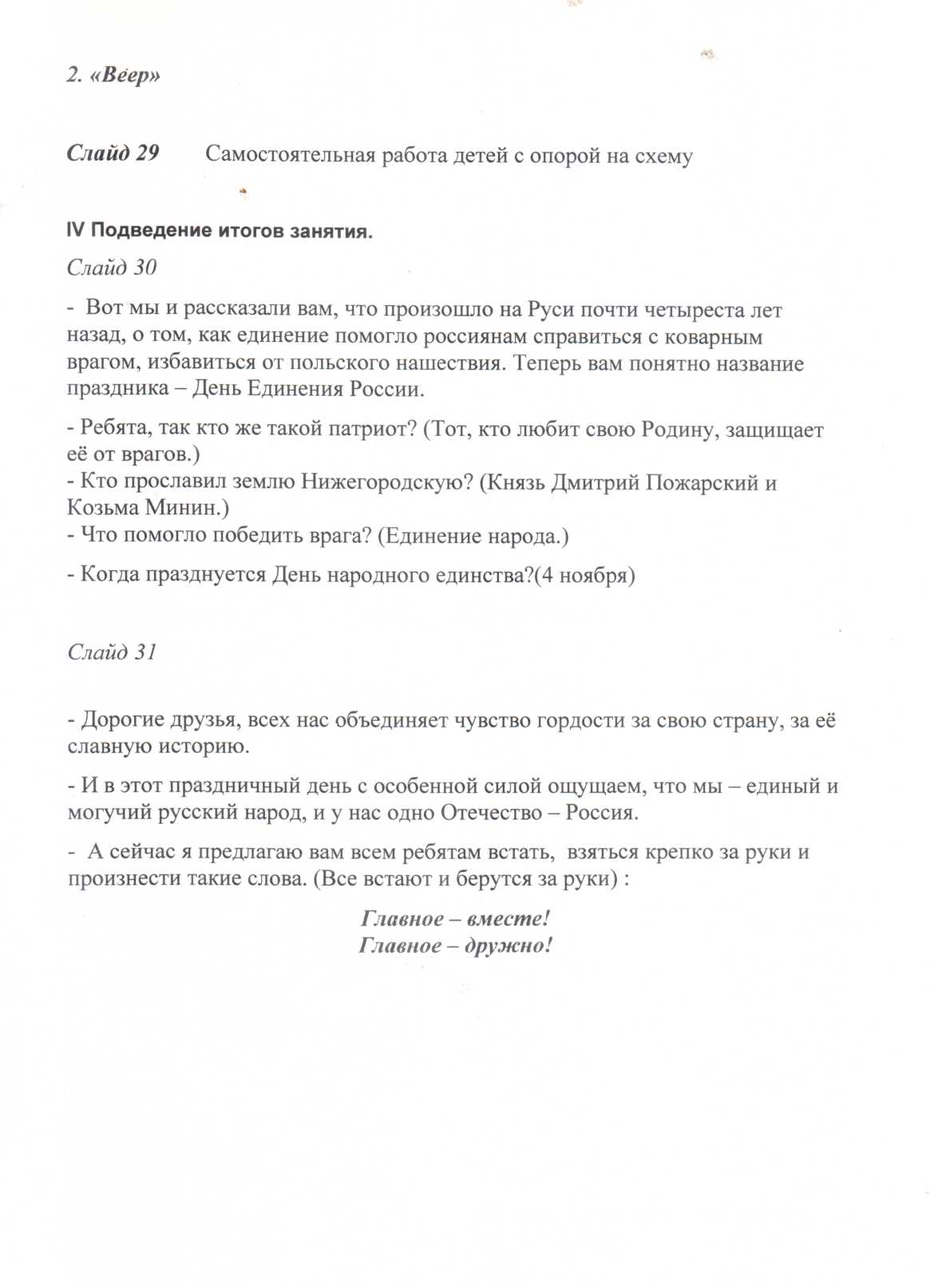 28.03.2021 Конспект интегрированного занятия "День народного единства" Принять участие в этом конкурсе Описание конкурса Список всех конкурсов Дорофеева Ольга Александровна ГУ ТО "СРЦН № 2" Конкурсная работа Свидетельство участника экспертного совета жюри Свидетельство можно заказать сразу, как Вы оставите не менее 3 объективных комментариев в этом разделе сайта. Узнать подробнее Русские- коренной народ Урала Наша Родина - Россия У вас недостаточно прав для добавления комментариев.Чтобы оставлять комментарии, вам необходимо авторизоваться на сайте. Если у вас еще нет учетной записи на нашем сайте, предлагаем зарегистрироваться. Это займет не более 5 минут.