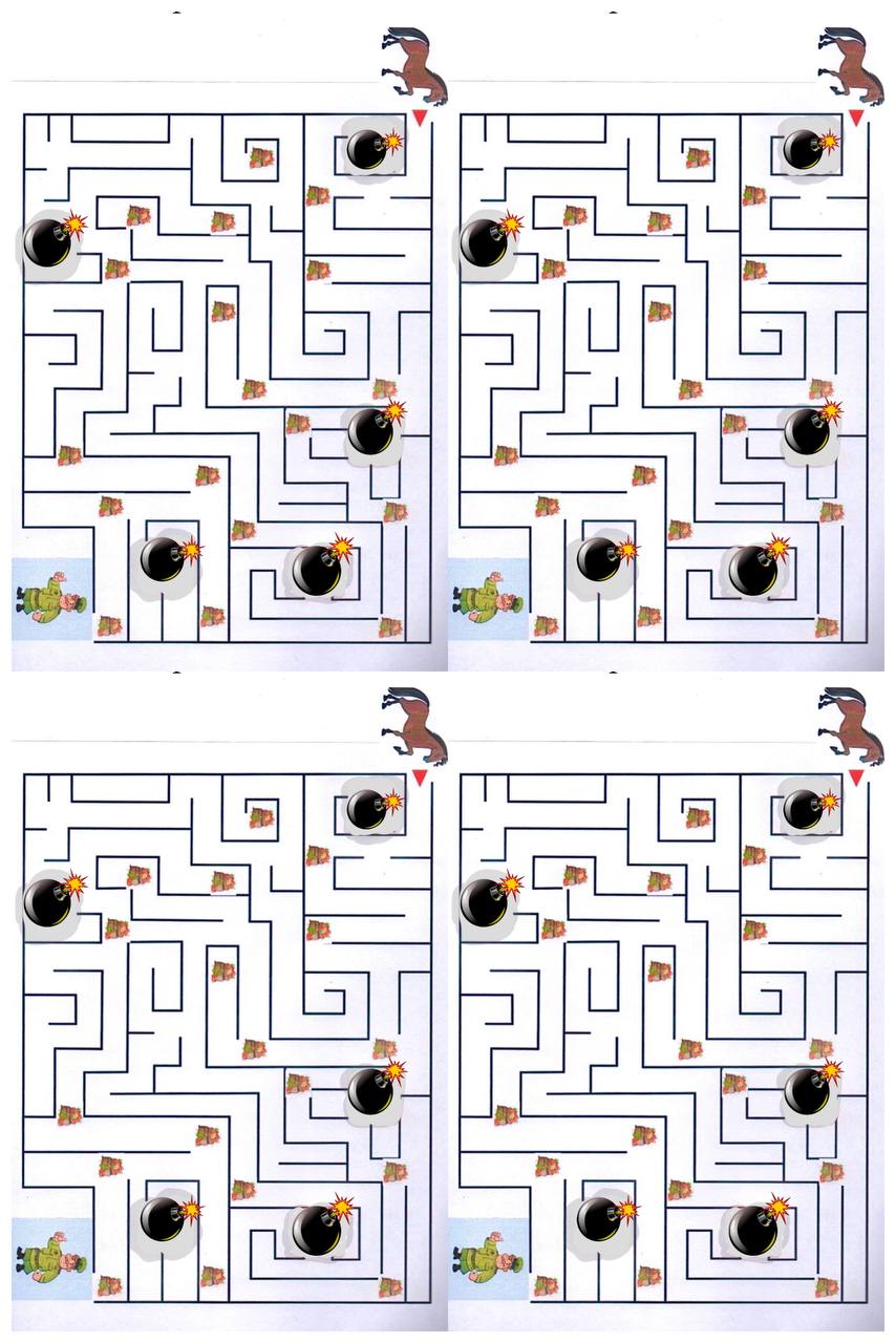 - Сейчас вам нужно выполнить второе задание: проведите лошадь к солдату по лабиринту, собирая припасы, но не попадитесь на бомбы. Молодцы, получите второй жетон.