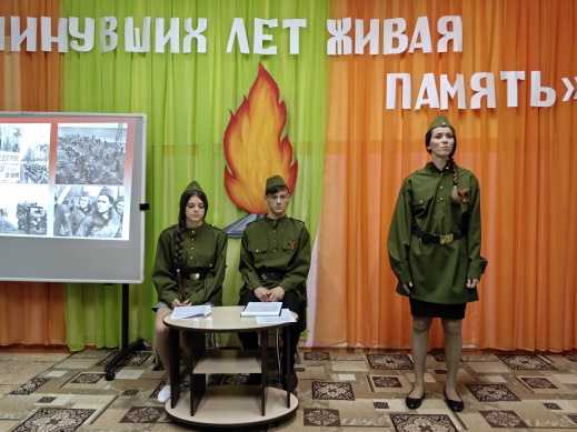 Литературно-музыкальная гостиная под названием «Минувших лет живая память», посвященная 80-ой годовщине Победы в Великой Отечественной войне, в майские дни прошла в ОГКУ «Центр помощи детям, оставшимся без попечения родителей, Асиновского района». Основная цель мероприятия – патриотическое воспитание, гражданское образование подрастающего поколения. Участниками стали как дети, так и взрослые сотрудники Центра. Началось мероприятие с небольшой сценки, в которой была воспроизведена атмосфера последнего предвоенного вечера. Вася Д. и Вероника Д. в роли школьных выпускников рассказали, о чём мечтали выпускники 1941 года, какие планы на будущее они строили, и как эти планы были разрушены войной. Елена Дмитриевна Петрашова прочла стихотворение К. Симонова «На минском шоссе». Никита Ч., Таня Д. читали стихотворения о войне, а Лиза Г. о Победе 1945, также был показан отрывок из кинофильмов «Битва за Москву», песню из кинофильма «Офицеры» исполнила педагог ДО Кудрявцева В.С. На мероприятии было озвучено много исторической информации, в том числе рассказано о том, какой вклад для Победы в войне 1941 – 1945г.г. был вложен жителями Томской области и Асиновского района. Олейник М.А. рассказала о своём дедушке, участнике Великой Отечественной войны, который шестнадцатилетним мальчишкой ушёл на фронт, прошёл всю войну. Дети посмотрели фото боевых наград дедушки, бережно хранимых в семье.События Великой Отечественной войны невозможно представить в отрыве от дня сегодняшнего, от того, что происходит сейчас на Донбассе, в Курской, Белгородской областях. Примечательно то, что в Специальной военной операции участвуют ребята с нашего Центра и многие из них погибли. Это также было отмечено на мероприятии. Под зажжённые свечи памяти и песню Ярослава Дронова «Встанем!» был показан фильм о наших воспитанниках погибших в Украине. Завершилась литературно-музыкальная гостиная замечательной песней «День Победы». Её спели стоя все вместе, и ведущие мероприятия, и зрители.