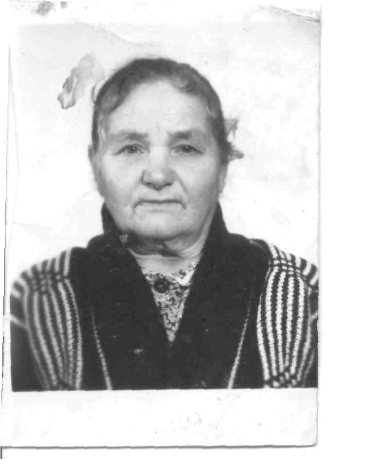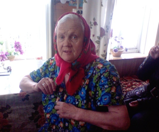 Родилась в 1927 г. р. в дер. Журавли Яранского района. В семье их было 5 детей: три брата и две сестры. В 1936 году пошла в школу. В довоенное время в первый класс принимали детей с 9 лет, поэтому окончание начальной школы совпало с началом войны. Во время войны работала разнорабочей в колхозе. Всю работу выполняли женщины, старики и дети. На колхозных полях работали на лошадях, а дома сами впрягались в плуг по 2-3 человека и обрабатывали землю. Ходили в лаптях. Ели картошку, хлеб, часто смешанный с лебедой, пестами (хвощами), иногда по весне собирали гнилую картошку. Зимними вечерами собирались в одном доме и при свете лучины пряли, ткали, вязали. Детей заставляли менять лучины, так как взрослые были заняты делами. На фронт отправляли валенки, носки, варежки. Мальчишки - подростки зимой на лошадях возили зерно в город Йошкар - Ола. Молодёжь днём работала, а по вечерам успевала веселиться.