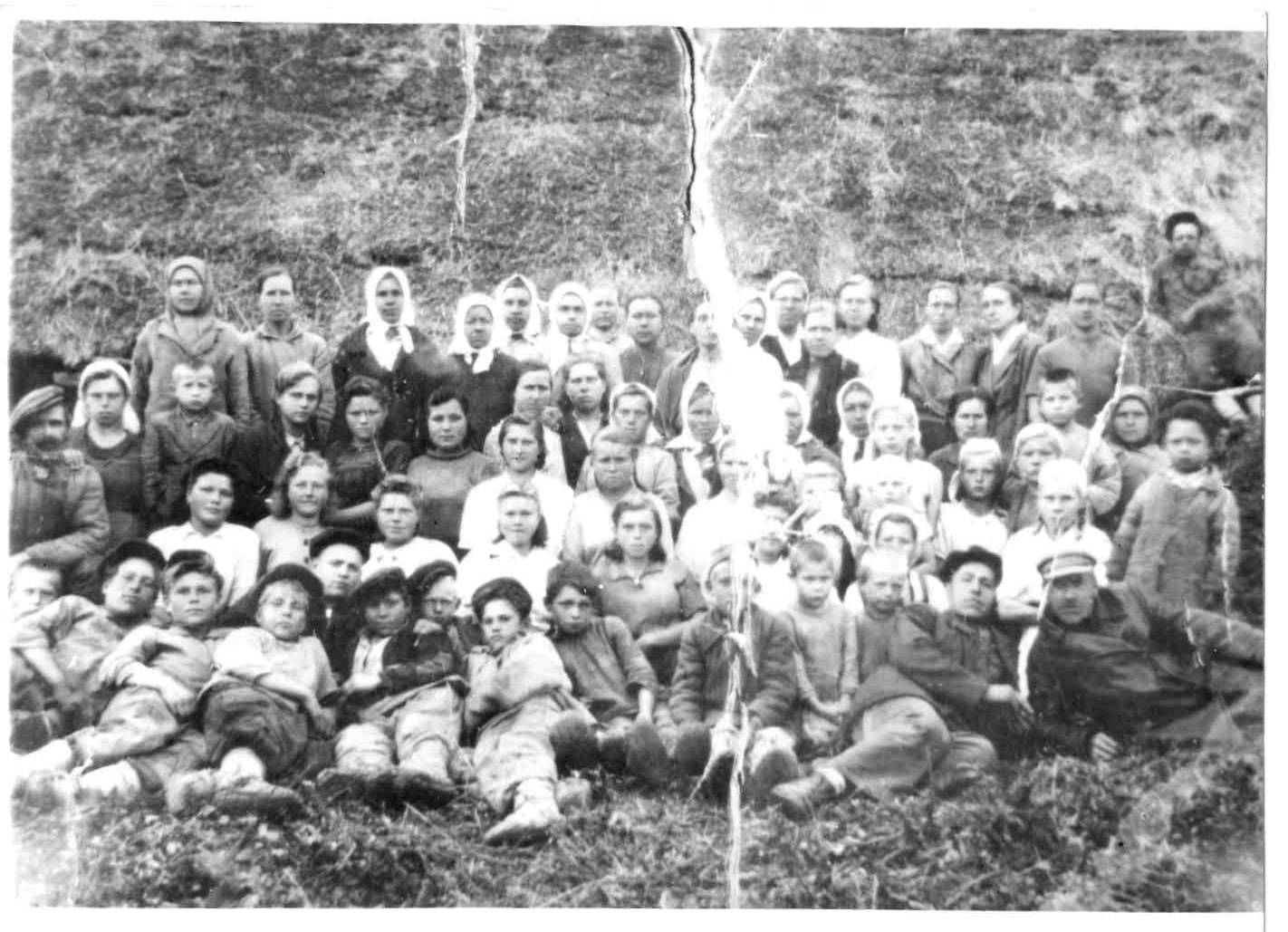 Жители д. Винокурово. (Фото выполнено во время войны после обмолота хлебов)