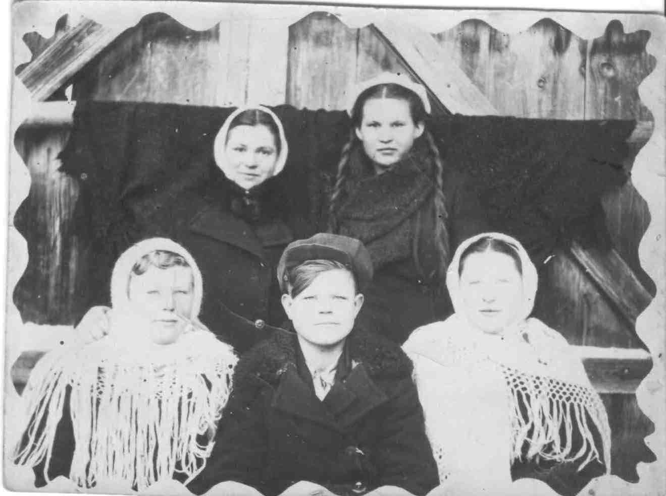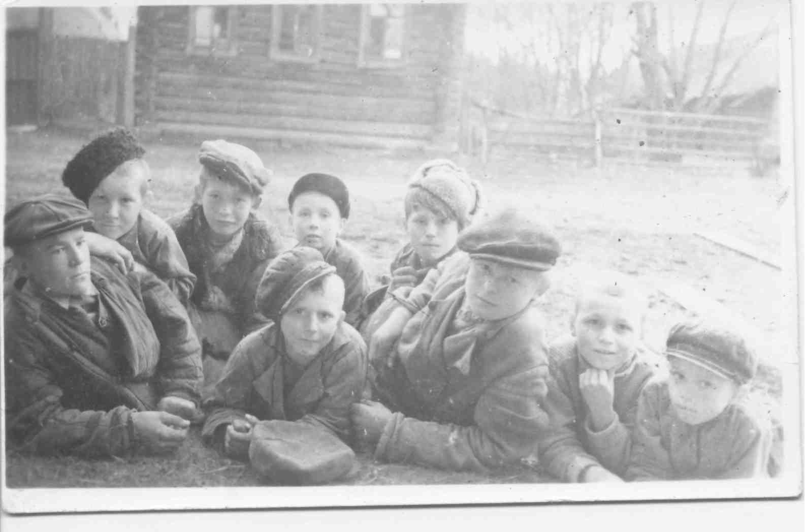 Мальчики из деревни Хмелевка. Фото выполнено в годы войны.Короткая передышка во время весенних полевых работ. Лошади с плугами остались за кадром.