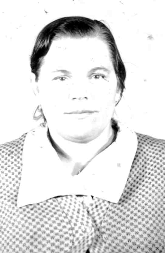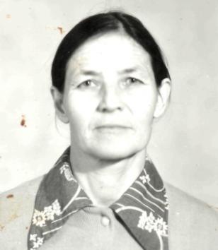 Родилась 1931г. в д. Бакалда Лумского с/совета. Отец умер до войны. Остались 4 девочки - сиротки. В школе не училась, так как надо было водиться с двумя младшими сестрами. Работать начала с 12 лет. Жили бедно, кушать было нечего, собирали мерзлую картошку, одеваться было тоже не во что, ходили в лаптях. Замуж вышла в д. Лежни. С 20 лет и до пенсии работала на ферме. Имеет звание «ветеран труда», награждена юбилейными медалями.