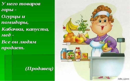 Воспитатель называет предмет, а дети — профессию человека, которому он необходим. Например: шприц, пульт управления, ножницы, мука, садовый опрыскиватель, телефон, доильный аппарат, носилки, рубанок, тачка, милицейский жезл, сверло, электрокабель, гвоздь, моток проволоки, кассовый аппарат, сумка почтальона, рулон обоев, касса, карандаш, кисть, поднос, звонок.