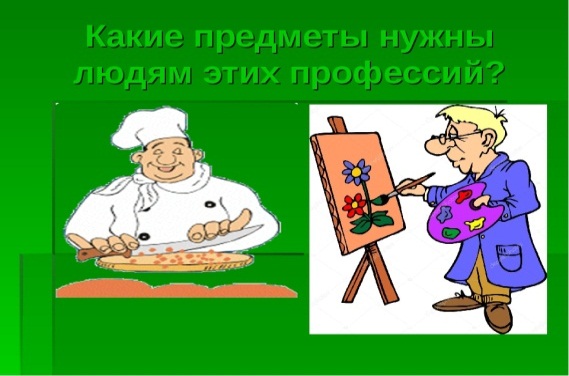 Цель: учить детей соотносить орудия труда с профессией людей; называть соответствующие профессии, предметы и их назначение.