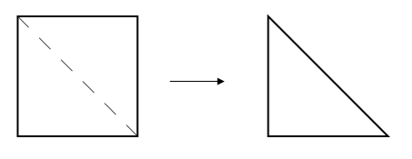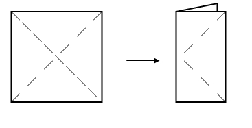 сложить квадрат пополам, так, чтобы получился прямоугольник с линиями сгиба от середины к краям – противоположным углам:
