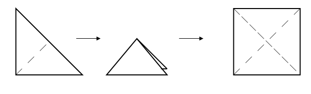 на квадрате две линии сгиба по диагонали: