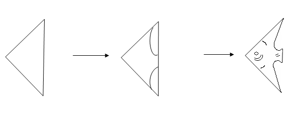 5) боковые стороны вогнуть вовнутрь по линиям сгиба, так, чтобы получился треугольник: