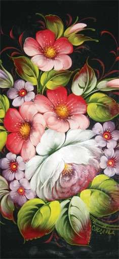 Недалеко от Москвы в очень живописном месте находится село Жостово. Эго село прославилось не только в нашей стране, но и за рубежом. А знаменито оно тем, что никто лучше местных умельцев не может рисовать цветы на железных подносах.