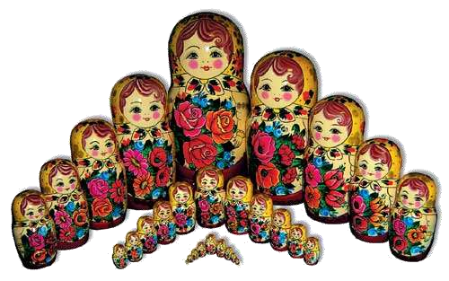 Русская деревянная кукла - матрёшка родилась в конце XIX века в Сергиевом-Посаде. Поэтому и говорят, что Родиной русской матрёшки является Сергиев-Посад. Первая матрёшка изображала девочку в сарафане с петухом в руках. Матрёшка сразу понравилась и взрослым, и детям. Всем нравилось её доброе и ясное лицо. Интересно было то, что в большой кукле пряталось дружное семейство сестричек, мал - мала меньше. Она разнимается на две части, а в ней оказывается еще одна фигурка, и так до 10-12 куколок.
