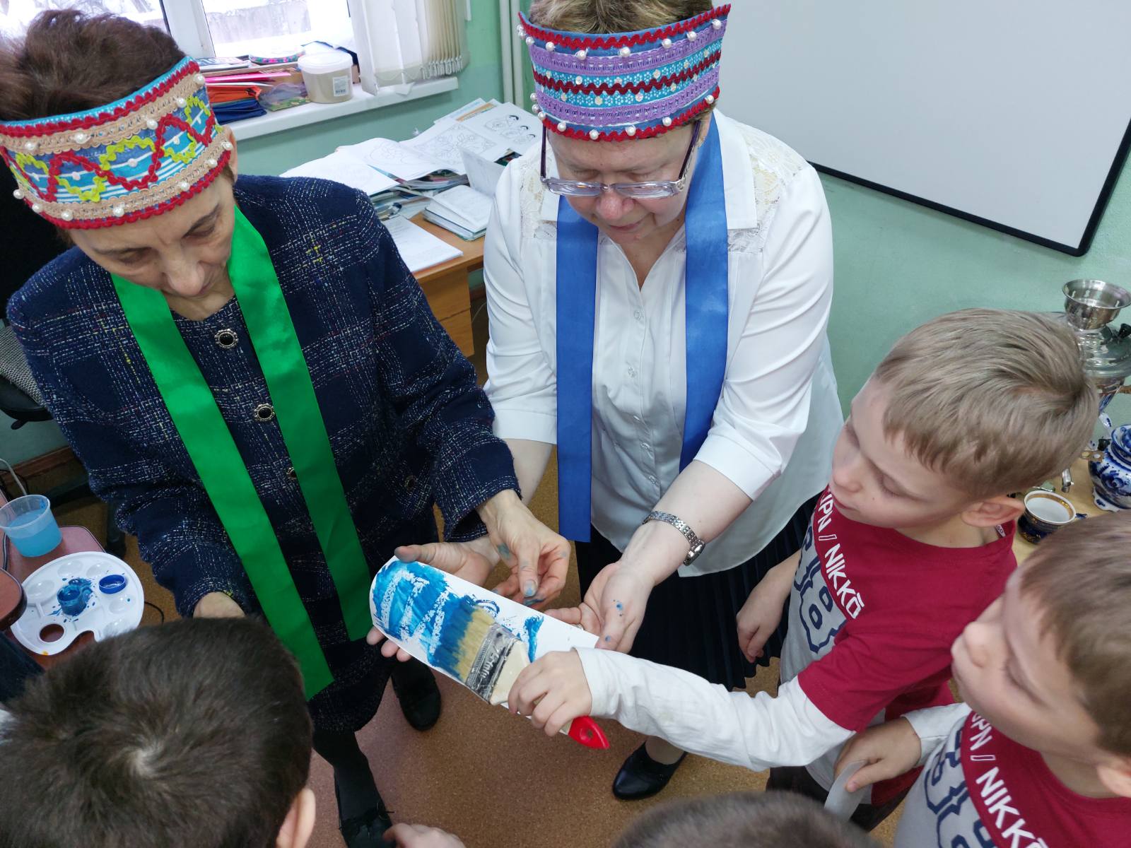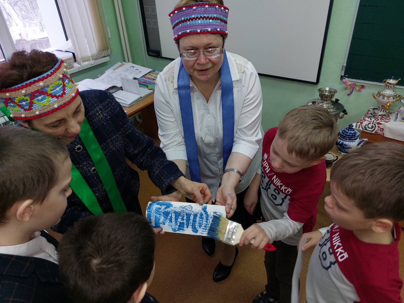 Материал и оборудование: оформление кабинета в соответствии с тематикой мероприятия: выставка изделий народно-прикладного искусства, презентация, карточки с невидимыми словами, написанными свечкой, паззлы, картинки по теме, краски, кисти.
