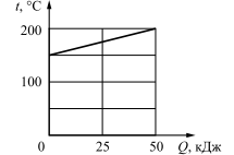 На рисунке представлен график зависимости температуры t твёрдого тела от полученного им количества теплоты Q. Масса тела 2 кг. Чему равна удельная теплоёмкость вещества этого тела?