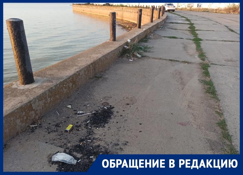 С собой люди часто берут что-нибудь перекусить, а иногда и вовсе устраивают полноценный пикник. Все бы ничего, но не все отдыхающие после этого ответственно выбрасывают отходы в контейнеры или увозят с собой для дальнейшей утилизации. Периодически здесь проводят субботники, но все тщетно - набережная снова и снова превращается в уже привычное для себя состояние.