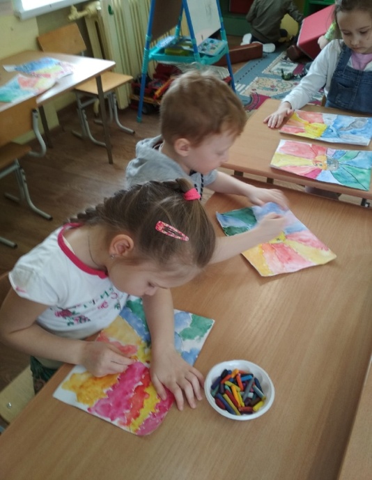 Рисование восковыми мелками «Волшебный лес» | Учить детей создавать композиции на тему окружающего, располагать на рисунке предметы так, чтобы они не загораживали друг друга. | ||