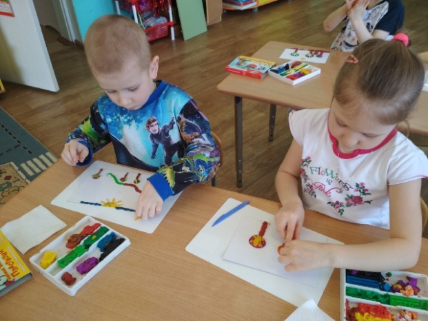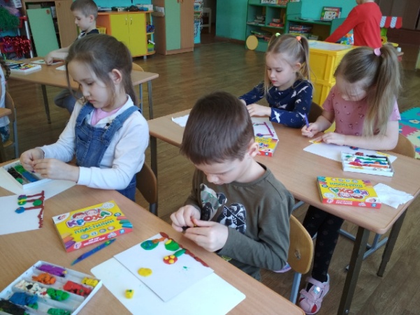 Лепка («налеп» из кругов) «Волшебные деревья» | Уметь лепить по представлению знакомые образы, лепить из целого куска пластилина | ||