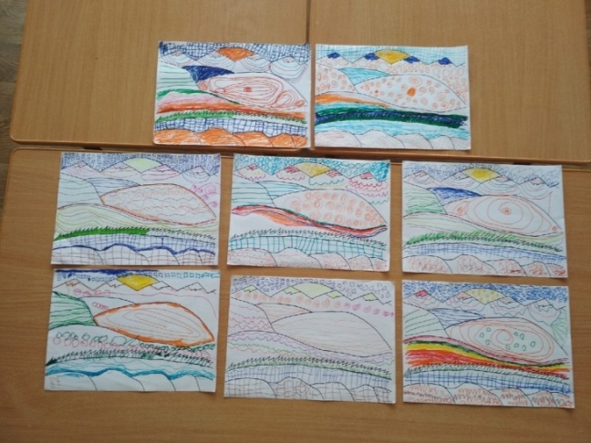 9 день - Рисование методом отпечатка гуашью «Заходящее солнце»
