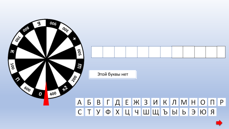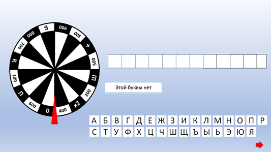Если стрелка укажет на сектор «+», то игрок может открыть любую букву.