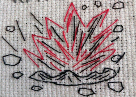 При изготовлении книги, не всегда есть подходящие под сюжет схемы. Это является сложностью, с которыми сталкиваются дети. Отсутствуют схемы вышивки батальных действий, поэтому требуется изучить, например, рисунки выстрела из пушки, воронки от взрыва снаряда для понимания порядка построения сюжета и выполнения вышивки этих изображений при помощи шва бэкстич.