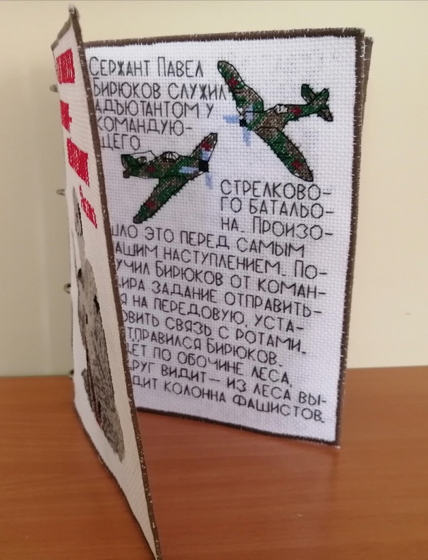 В процессе достижения поставленных целей работы, ученицы получают новые знания из истории своей семьи, своих предков-победителей, знакомятся с удивительным и многогранным миром текстильной миниатюры, изучают различные техники вышивки шрифтов и схем, а главное, получают огромное удовлетворение от выполненной работы. Текстильная открытка или книга вышитая своими руками, по-своему уникальна и необычна. Она может быть семейной реликвией или прекрасным подарком, в который вложена душа, мастерство и любовь