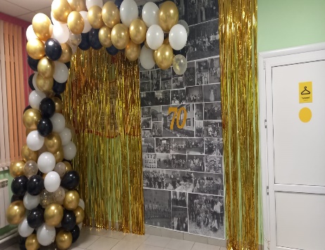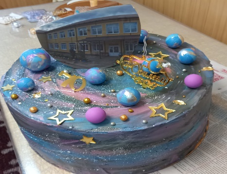 Воспитанники третьей группы совместно с воспитателями оформили стенд в своей игровой и украсили игровую большими фотографиями, связанными с жизнью в школе интернате. Отметим Максима за творческий подход к этому событию (рисунок школы с учетом мелких особенностей, с гостями и подарками). Большой вклад души от воспитателя – творческая работа над созданием шедеврального торта к юбилею школы в космической тематике. Оформление фойе школы для фотозоны. Воспитанники активно убирались на территории Заботы (убрана клумба 2 группы, убрана территория Заботы 3 группы, собраны фантики по всей школьной территории). Проведена работа с родителем Е.А., с просьбой сочинить стихотворение к 70-летию школы. Творческий замысел «Наша школа» и чтение с ребенком, очень порадовало всех зрителей. Е.А. вручено благодарственное письмо от школы, а Роме от библиотеки Островского привезли подарок – книги по Брайлю и кружечку.