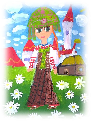 В далёкие времена на Руси жили могучие богатыри русские, которые умели пахать, косить, дома - терема рубить, а также Родину свою защищать от нашествий вражеских и девицы – красавицы, которые холсты ткали, узорами их вышивали. Слово «Русь», по предположениям учёных, произошло от слова «русло» (ложе реки, по которому она течёт меж берегов). Русский народ называли росами, а страну, где они живут – Россией.