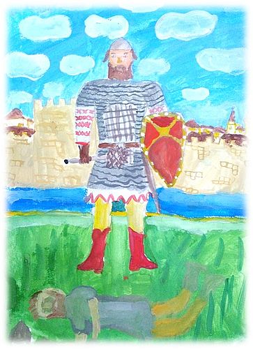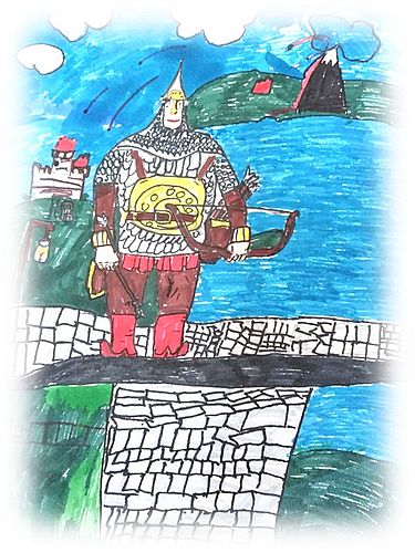 | 5.Самый удалой богатырь новгородского былинного цикла, который отчаянно буянит, бьётся об заклад, что побьёт всех мужиков новгородских на Волховском мосту и почти выполняет обещанное - пока его не останавливает мать. |