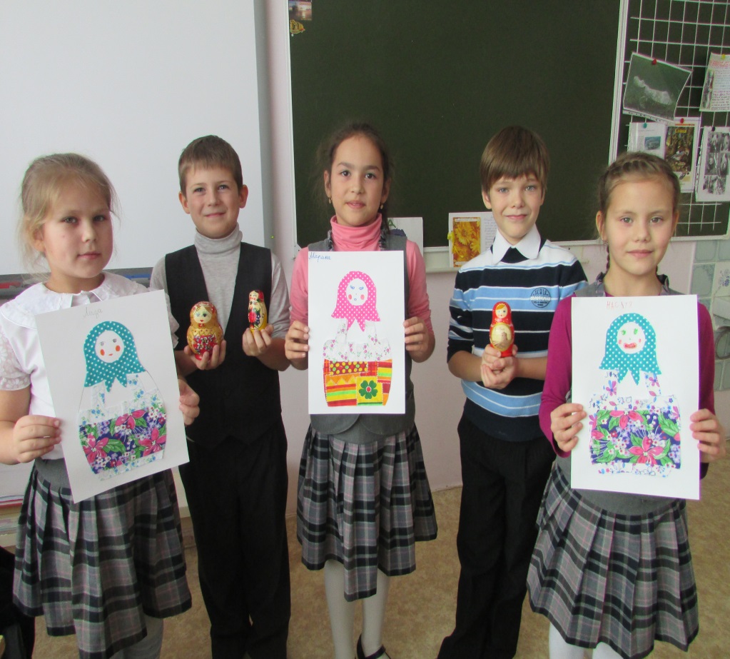 От каждой группы в центр выходят ученики с матрешками. Учитель объявляет: